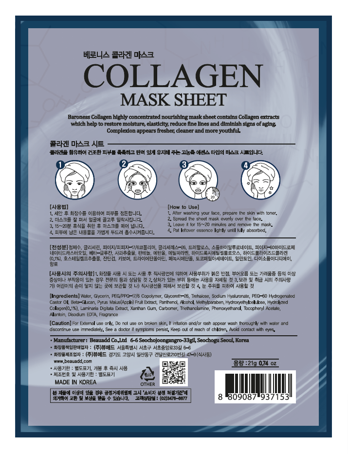 BARONESS COLLAGEN MASK SHEET KOLAJEN KAĞIT MASKE (5 ADET)